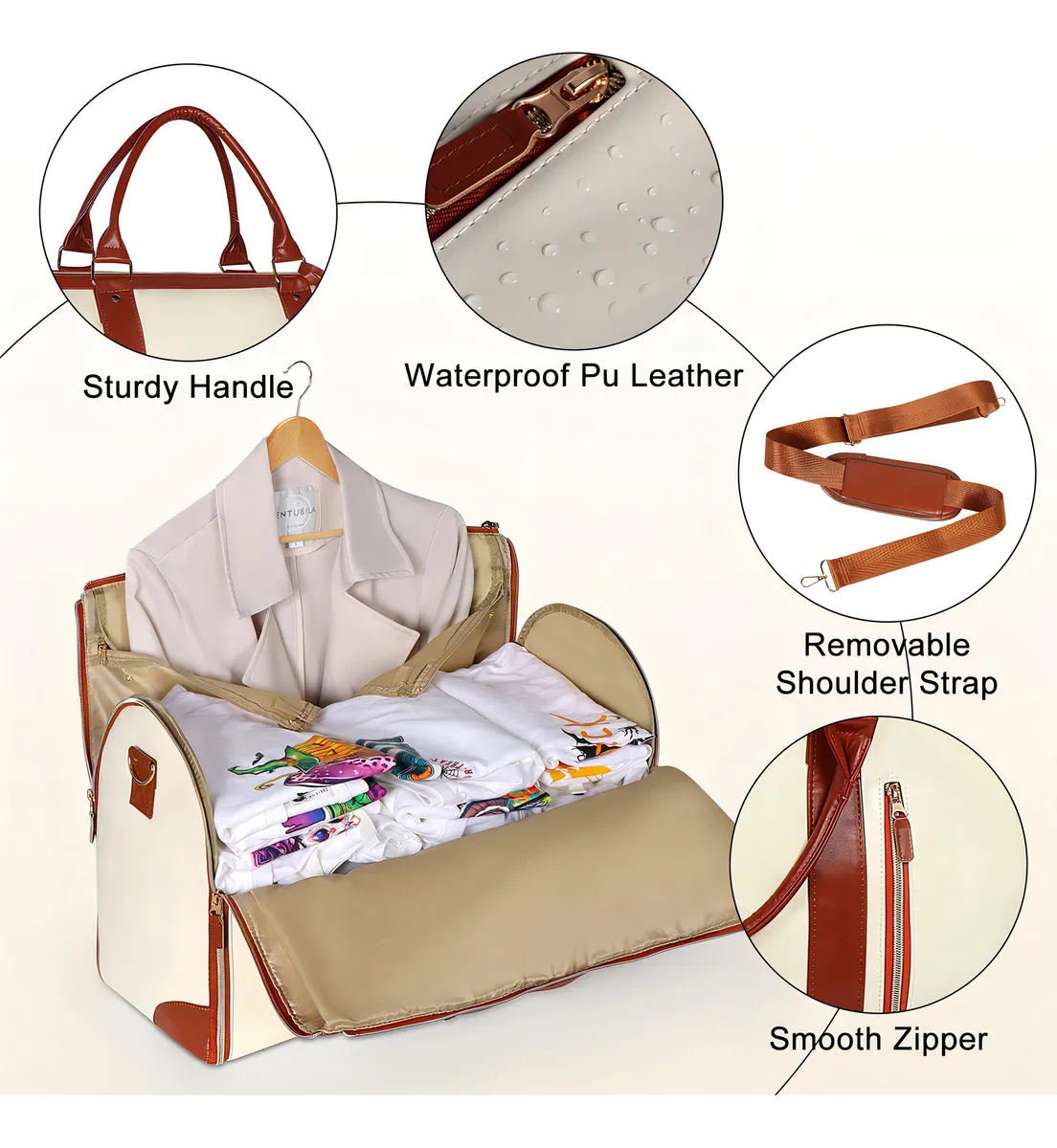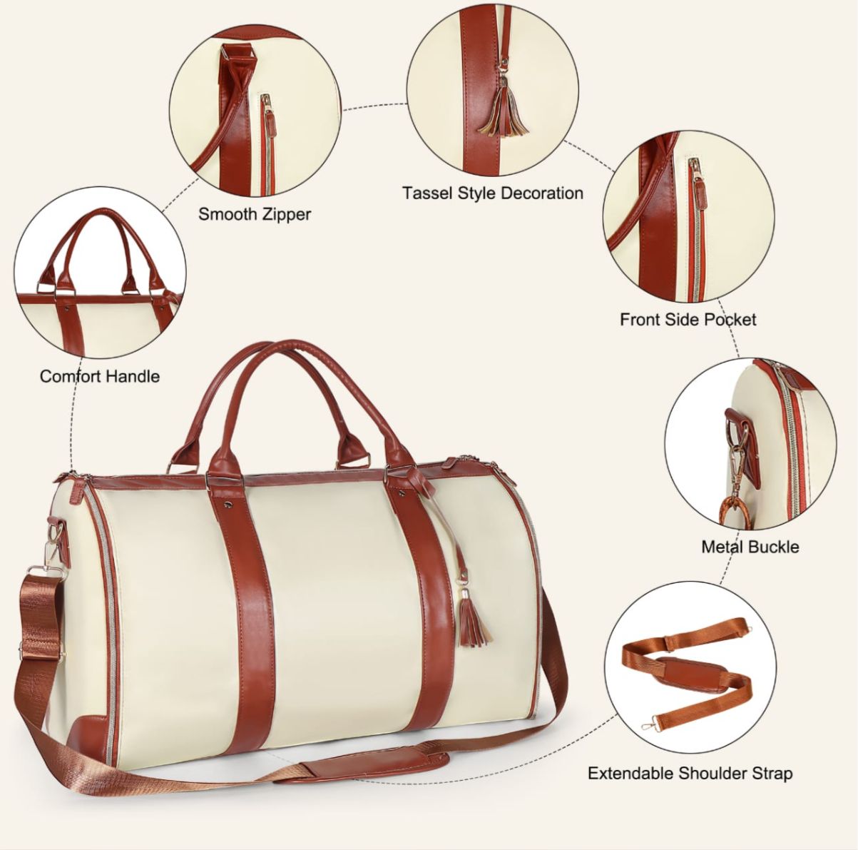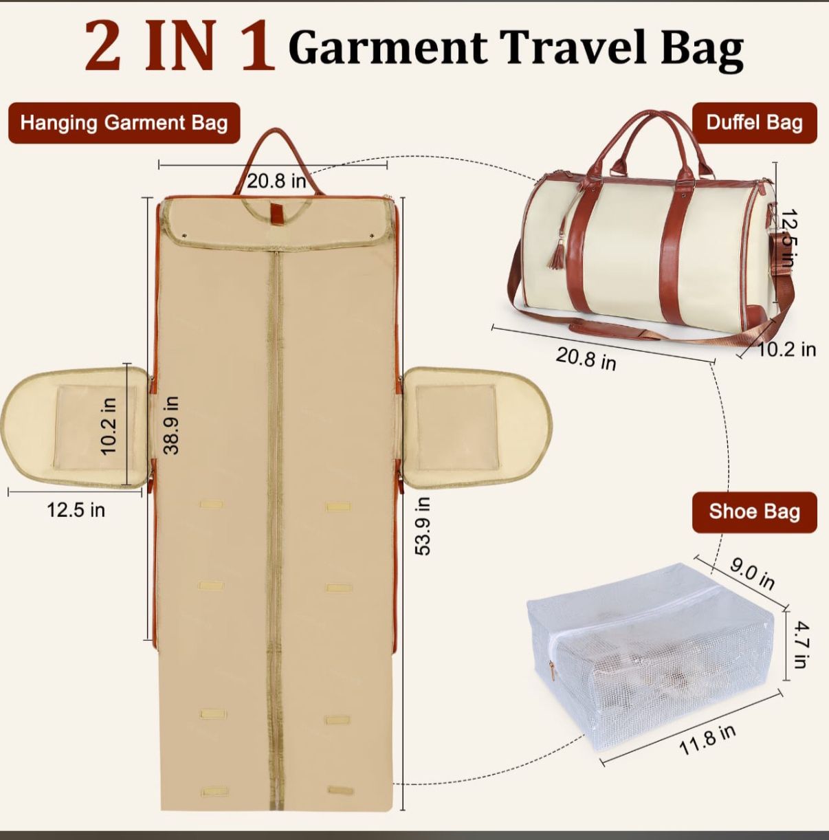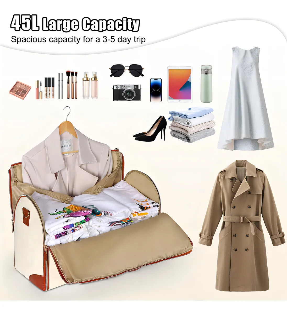 "¡BOLSO VIRAL DE VIAJE TikTok! 2 EN 1: cuelga vestidos sin arrugas + bolsa de lona de 45L para 3-5 días. Zapatos separados. Beige/rosa/negro. ✈️🔥